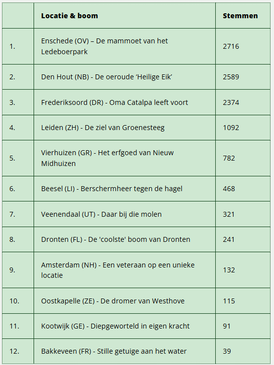 - Den Hout (NB) - De oeroude 'Heilige Eik' met 2589 stemmen, aangemeld door Ad Flipsen